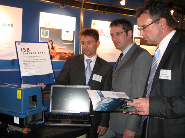 [...] Ein Thermo-Schutzgehäuse für optische Sensoren in der Industrietechnik hat die PSI Technics zur Marktreife gebracht. Prämiert und mit einem Preisgeld von 3.000 Euro bedacht wurde PSI Technics für eine Vorrichtung, die dank einer integrierten Kühlung den Einsatz von optischen Sensoren auch dort möglich macht, wo diese sehr temperaturempfindlichen Bauteile sonst kaum verwendet werden können. [...]