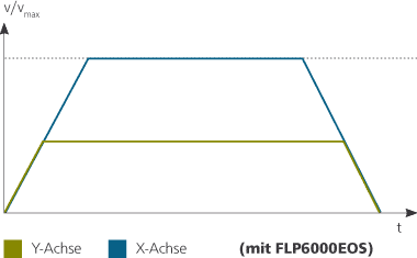 Das Optimierungsmodul FLP6000EOS spricht die einzelnen Achsen des Systems so an, dass diese in der regulären Positionierzeit, also ohne Zeitverzug, gleichzeitig an den Zielkoordinaten ankommen. Somit wird eine der Achsen mit reduzierter Geschwindigkeit betrieben. Der Anlagenbetreiber kann diese Funktion in Verbindung mit dem Positioniersystem ARATEC ohne Änderungen am Materialflussrechner, dem Lagerverwaltungssystem oder der Kransteuerung integrieren.