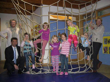 Schon lange wünschten sich die Erzieherinnen der Bewegungstagesstätte Staudt ein Kletternetz mit den dazugehörigen Sicherheitsaufhängen. Durch die großzügige Spende von Herrn Karl-Heinz Förderer aus Staudt, Geschäftsführer der Firma PSI Technics, in Koblenz konnten diese Wünsche plötzlich unerwartet in Erfüllung gehen.