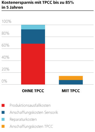 Über einen Zeitraum von fünf Jahren lassen sich durch den Einsatz des TPCC bis zu 85 Prozent der Kosten aufgrund defekter oder ausgefallener Sensorik einsparen. Das TPCC garantiert einen langfristen und sicheren Einsatz elektrischer Komponenten. Glashersteller können ihre Investitionen in teure Sensorik auch in rauen Umgebungen schützen bzw. sie überhaupt erst dort einsetzen.